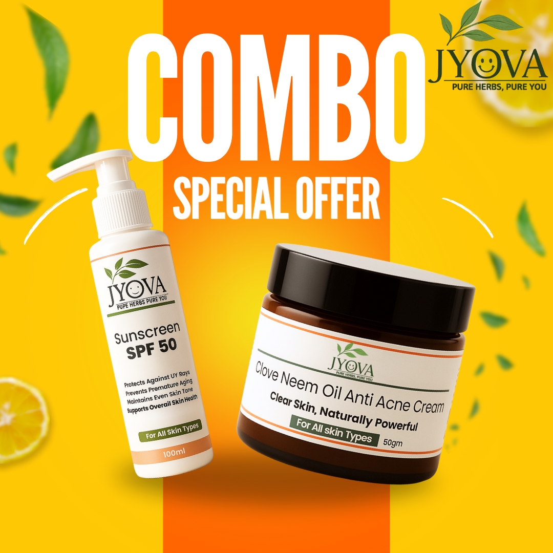 JYOVA brings you the perfect skincare pair — Sunscreen SPF 50 for all-day UV protection and Clove Neem Anti Acne Cream for clear and spotless skin. Ideal for all skin types and suitable for both men & women.