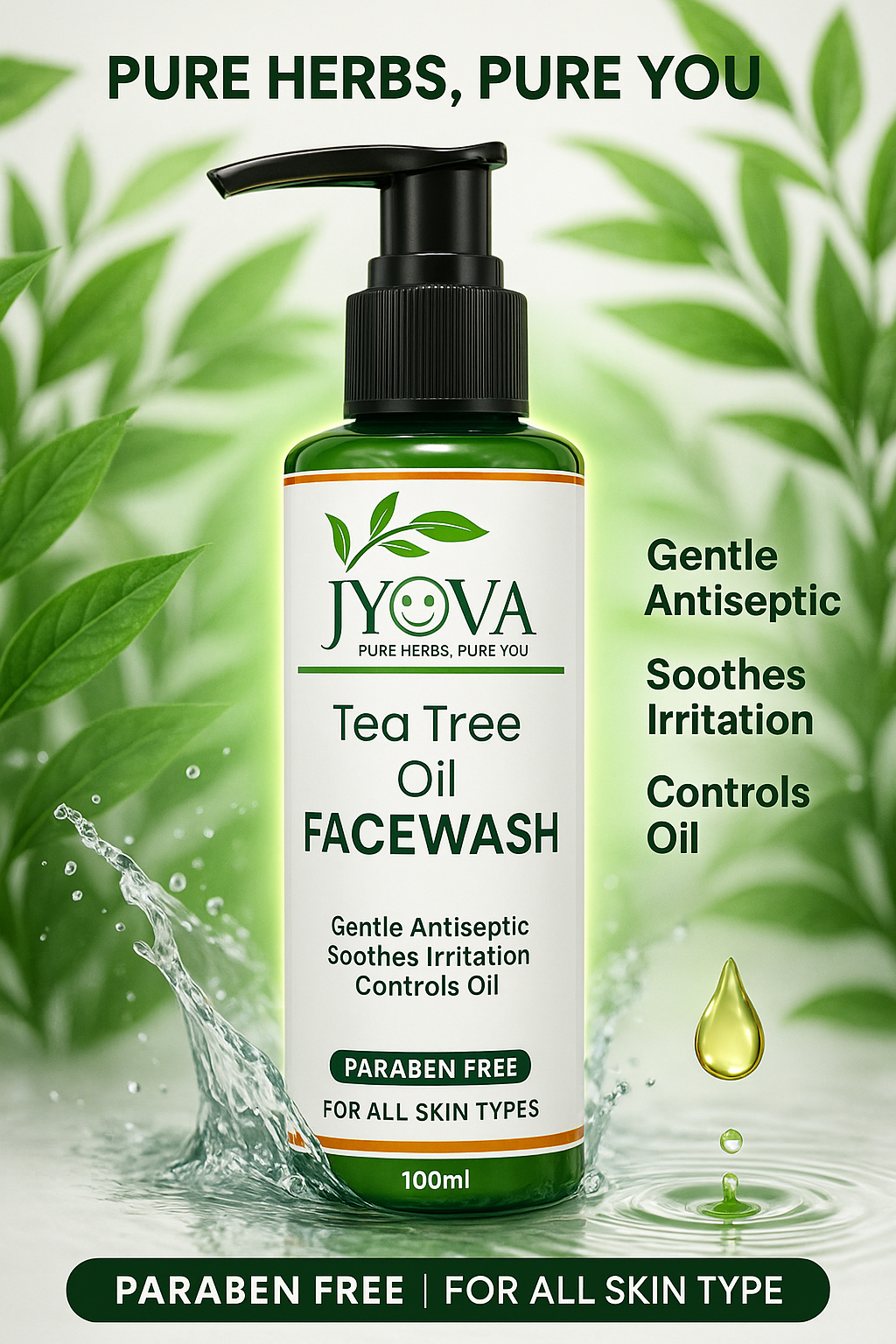 🌿 Jyova Tea Tree Oil Facewash – Clear, Fresh & Acne-Free Skin Say goodbye to pimples, excess oil, and impurities with Jyova Tea Tree Oil Facewash. Powered with the natural goodness of Tea Tree Oil & Aloe Vera, this gentle yet effective cleanser deeply purifies your skin, controls acne-causing bacteria, and keeps your face fresh all day long. ✨ Key Benefits Fights acne & pimples naturally Removes excess oil & dirt Unclogs pores & prevents breakouts Soothes skin with Aloe Vera extract Leaves skin fresh, clear & healthy 🌱 Dermatologically tested | SLS & Paraben free | Suitable for oily & acne-prone skin 👉 Make Jyova Tea Tree Oil Facewash a part of your daily skincare routine for naturally clear, glowing, and problem-free skin.