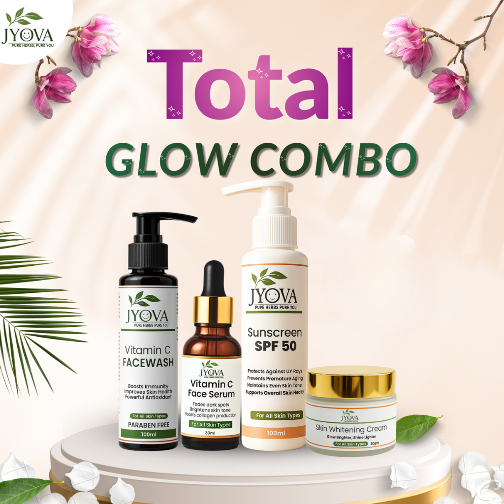 JYOVA Glow & Protection Skincare Combo is designed to provide a complete skincare routine that helps cleanse, brighten, hydrate, and protect the skin. This combo includes Vitamin C Face Wash, Vitamin C Face Serum, Skin Whitening Cream, and Sunscreen SPF 50, making it perfect for achieving healthy and glowing skin.